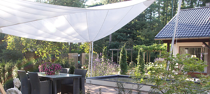 Losse zonnewering maken we geheel op maat. Daarvoor gebruiken we dichtgeweven kleurvast acryldoek of screendoek dat 80 % van zon en warmte tegenhoudt, maar waar je wel doorheen kunt kijken.
