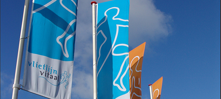 Bedrukte doeken kunnen wij confectioneren tot banners of vlaggen.
